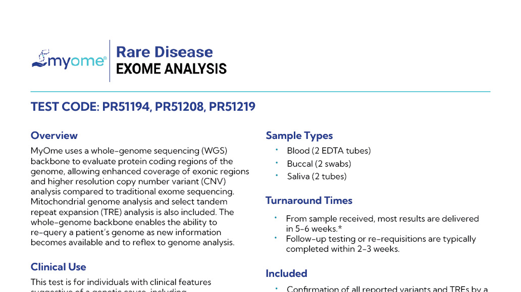 We make it easy to order MyOme's Rare Disease Exome Analysis. Talk to your healthcare provider to learn more and start diagnostic testing today.