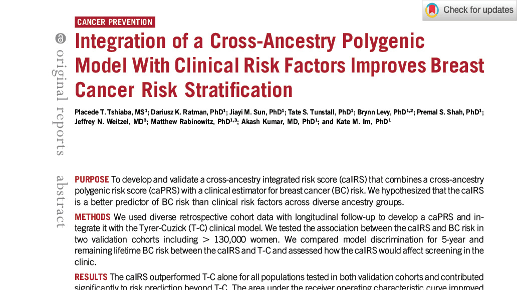 Integration of a Cross-Ancestry Polygenic Model With Clinical Risk Factors Improves Breast Cancer Risk Stratification