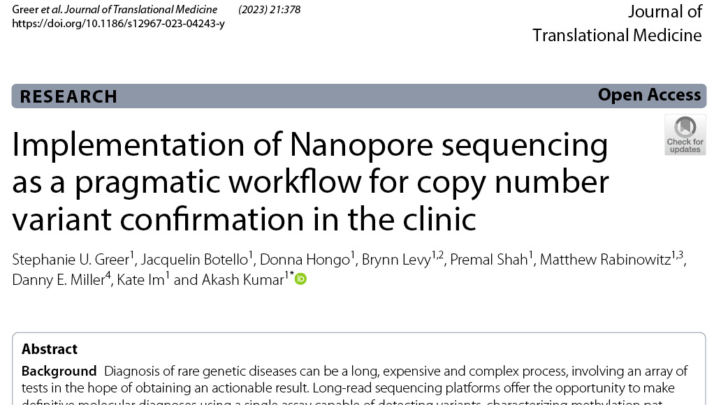 Implementation of Nanopore sequencing as a pragmatic workflow for copy number variant confirmation in the clinic